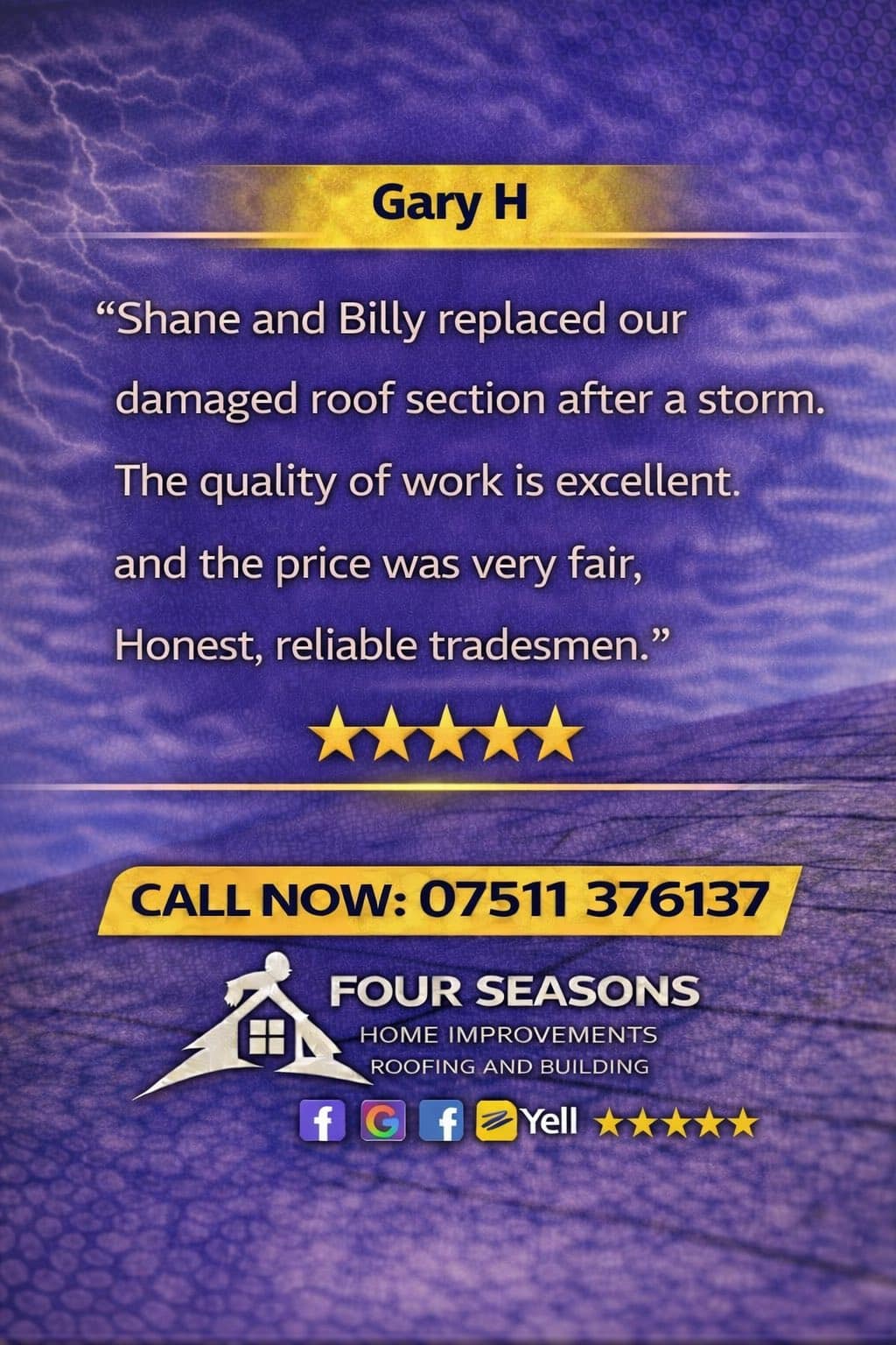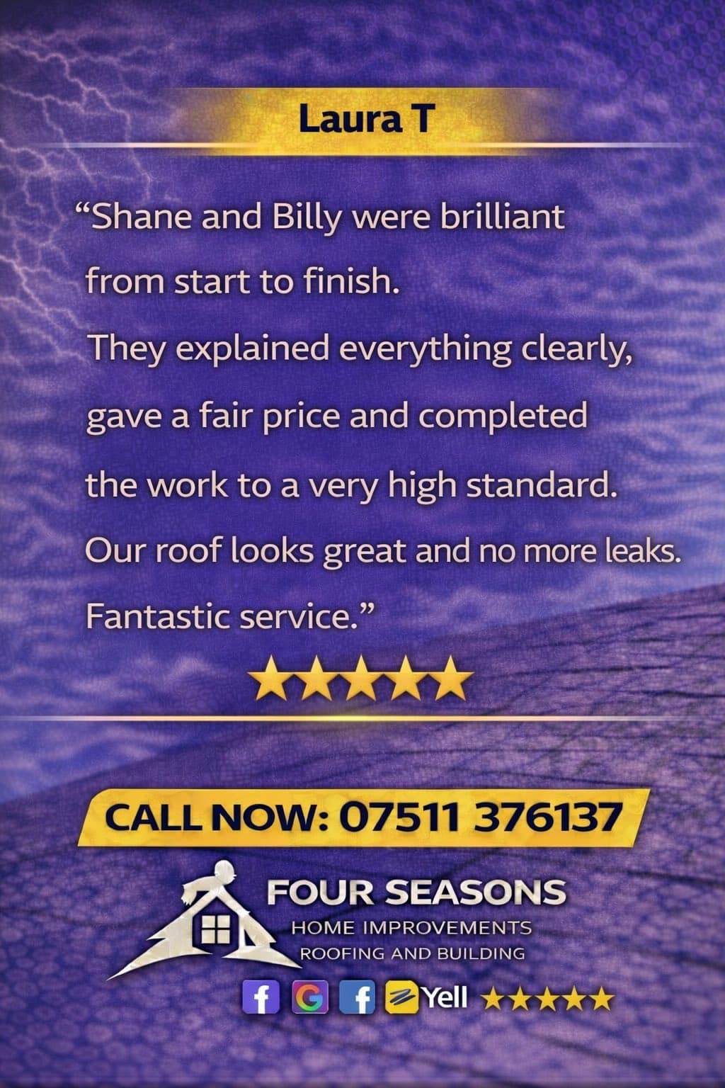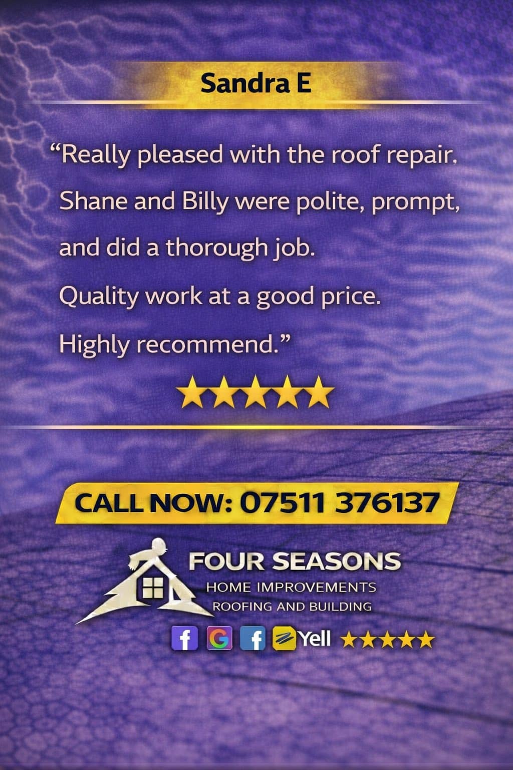 Great work, great price! We would happily use Four Seasons team again and recommend them. 5 stars!