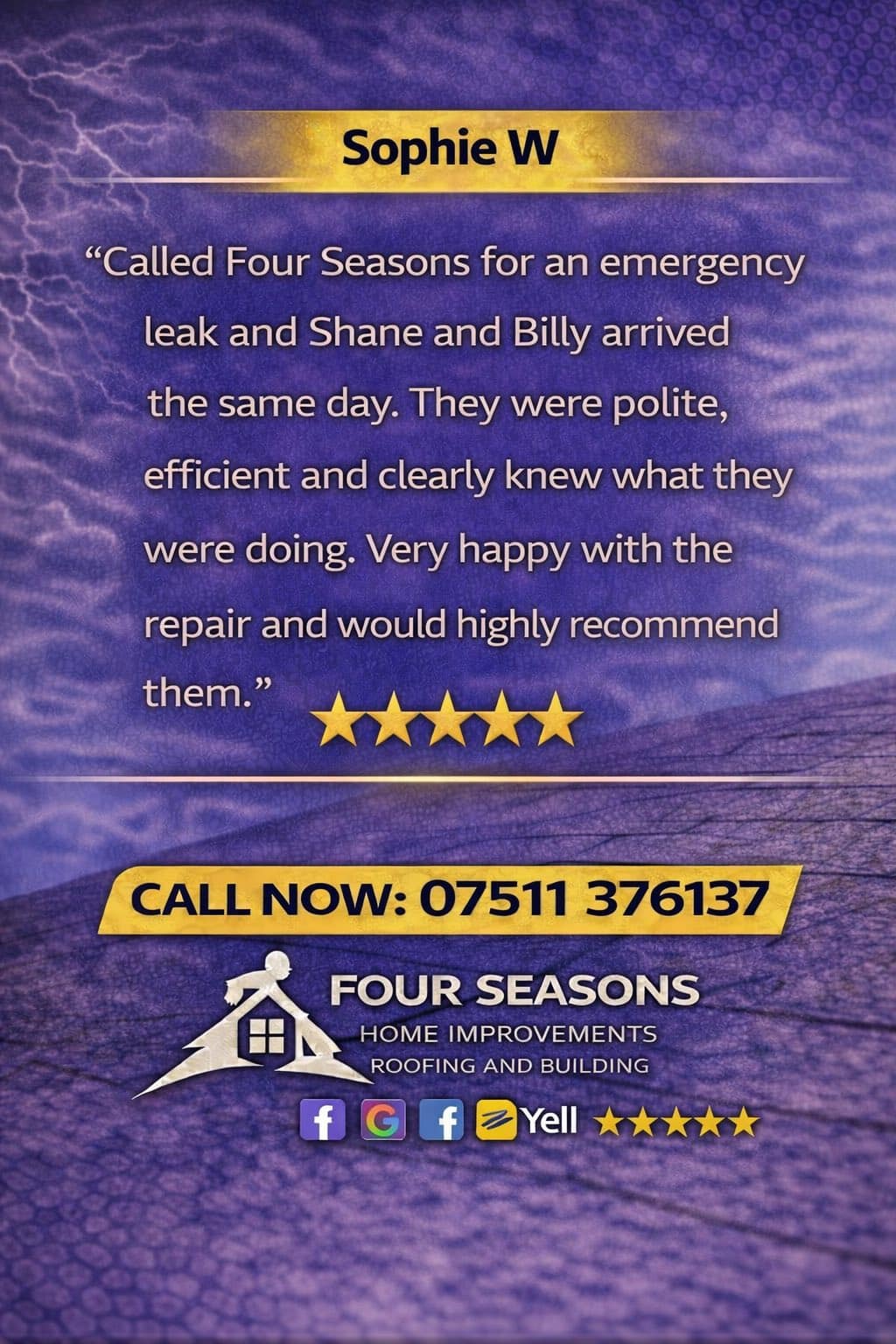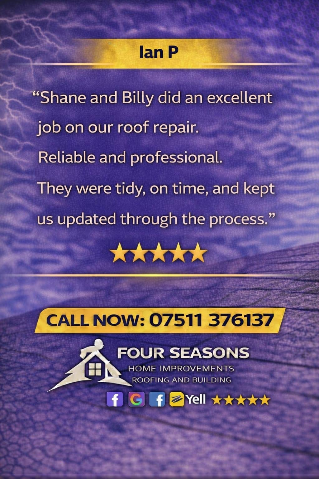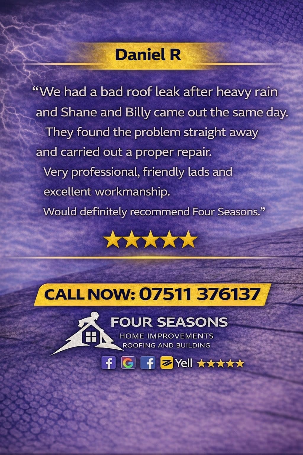 Great work, great price! We would happily use Four Seasons team again and recommend them. 5 stars!